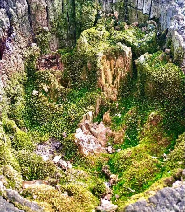 Fotografie horské soutěsky porostlé džunglí nebo jen starý mechem porostlý sloup?
