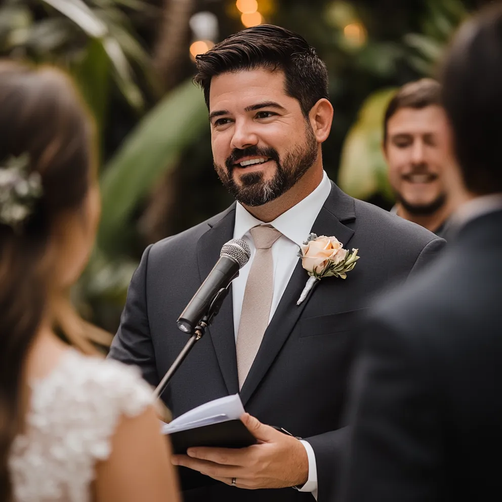 O chvíli později Caleb vystoupil na malé pódium s mikrofonem v ruce. Moderátor ho představil jako nevlastního syna ženicha – podivný titul, vzhledem k časové ose, ale nikdo to zřejmě nezpochybňoval.