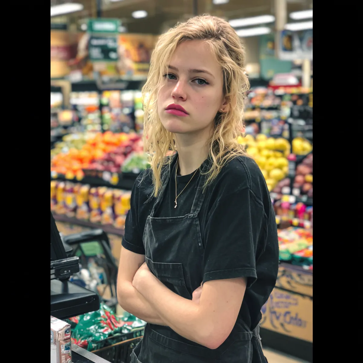 Její tvář se na okamžik zčervenala, výraz mezi zmatením a nedůvěrou.