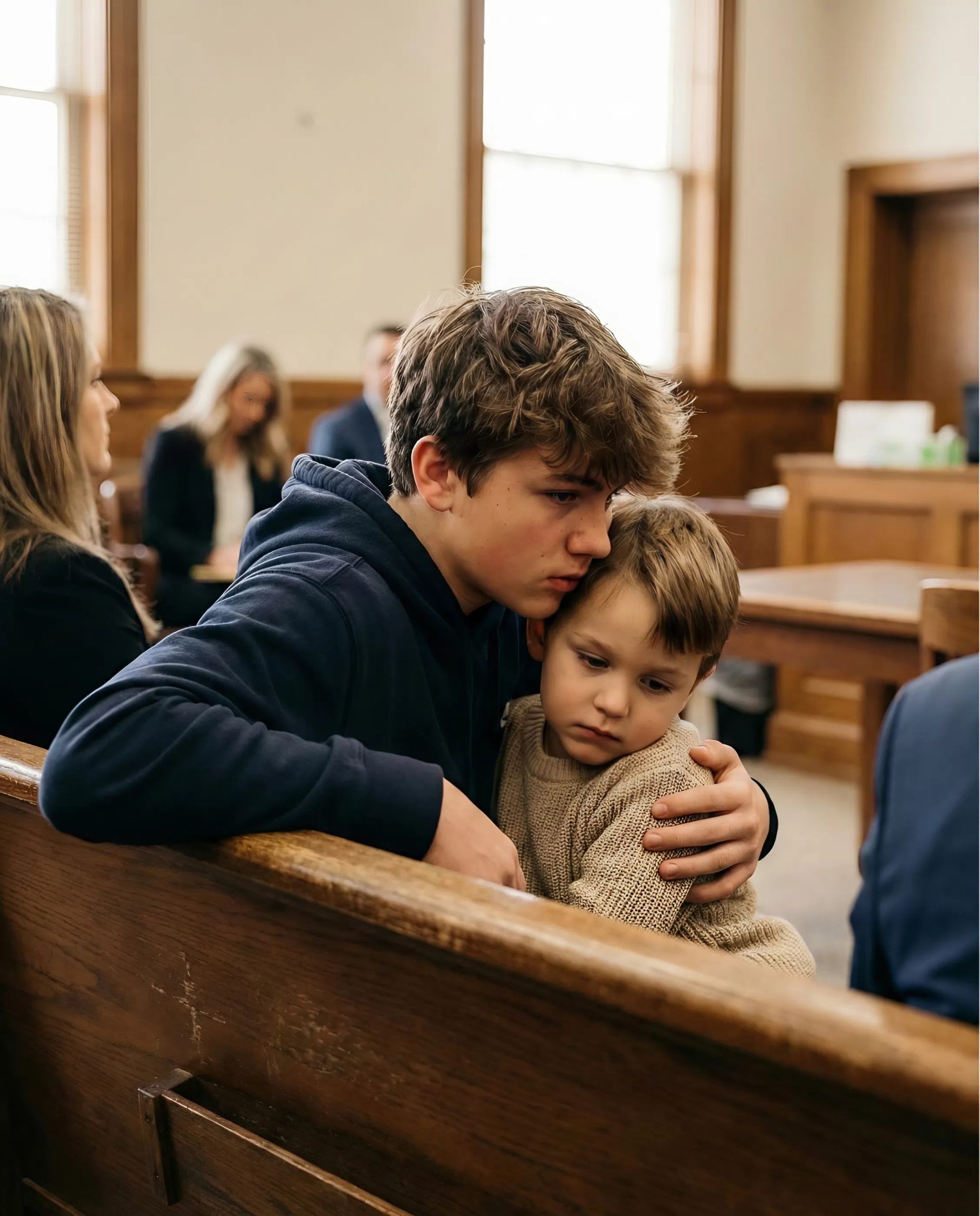 Soudní síň byla chladná a příliš jasně osvětlená – tím světlem, které ti dává pocit, že jsi vystaven na odiv. Soudce Brenner seděl před námi s přívětivým výrazem ve tváři, brýle mu sklouzávaly na nos a před ním ležela hromada spisů – příliš těžká na něco tak osobního.