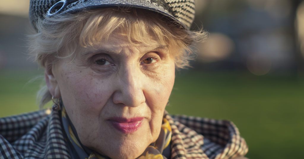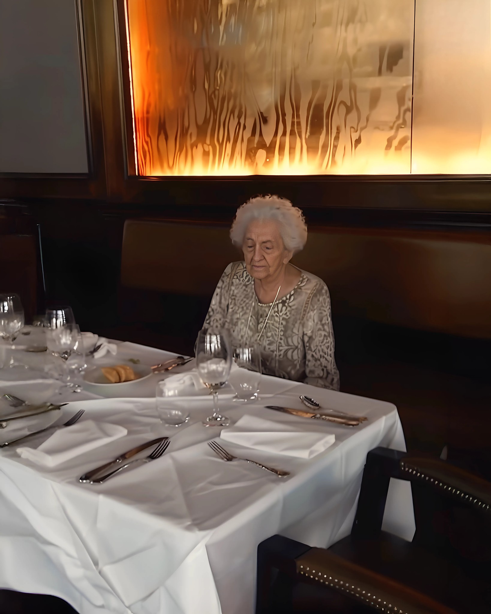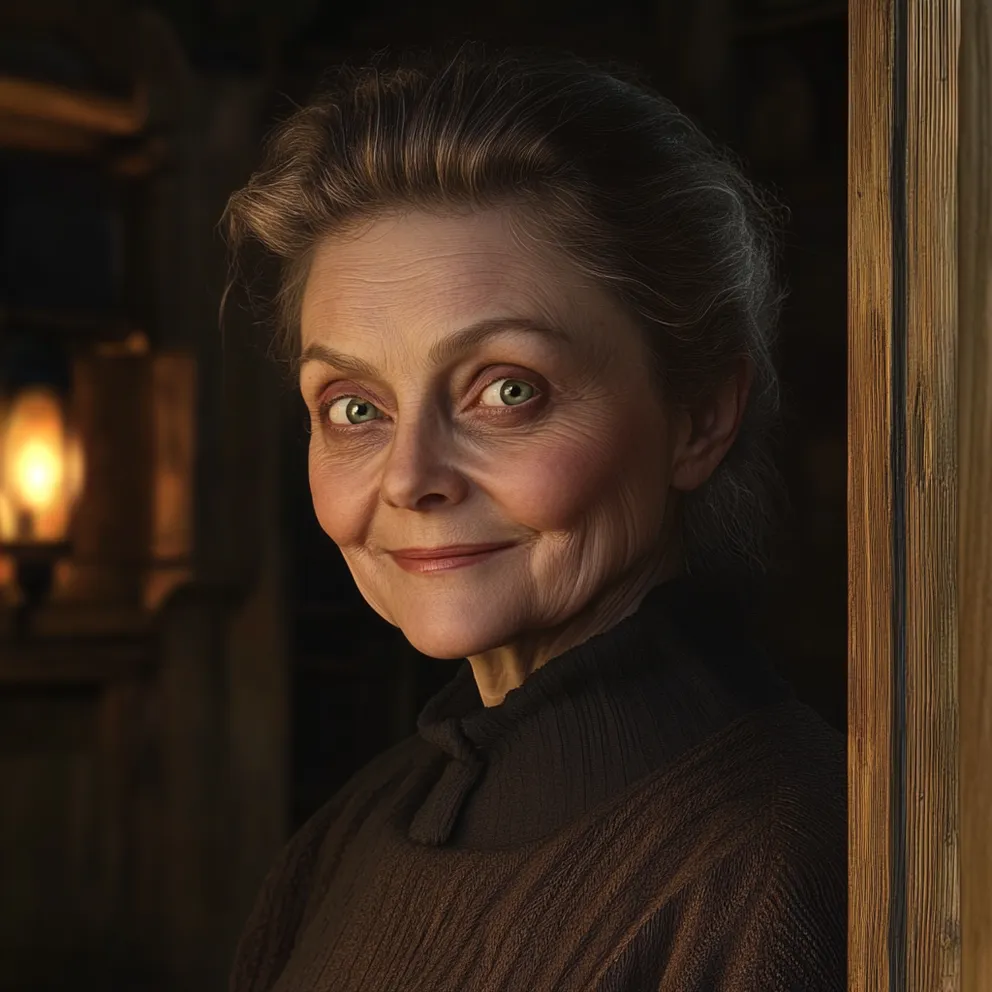Její vlasy byly pečlivě upravené do drdolu a její tvář, i když stará, zářila něčím mezi smutkem a sebejistotou.