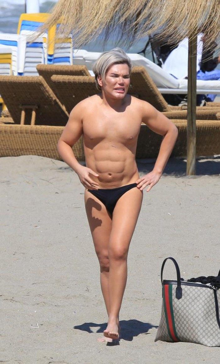 Rodrigo Alves, muž-panenka, byl spatřen na pláži ve španělské Marbele. 33letý živý Ken předvedl své falešné břišní svaly za 30 tisíc dolarů, a vlastně i všechno ostatní na něm je také umělé.