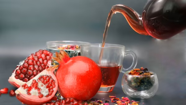 Čaj ze slupky granátového jablka: Sušená slupka se vaří ve vodě, aby vznikl čaj bohatý na antioxidanty, který lze konzumovat denně.