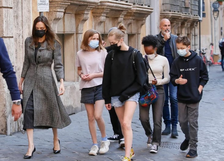 V červenci 2024 byla Angelina spatřena při nákupech v obchodě pro domácí mazlíčky spolu s Knoxem v Los Feliz, prestižní čtvrti v Los Angeles. Herečka vypadala stylově v bílém topu s hlubokým výstřihem, černé bundě a ladících kalhotách, zatímco Knox zvolil šedé tričko a šortky doplněné vysokými teniskami Nike.