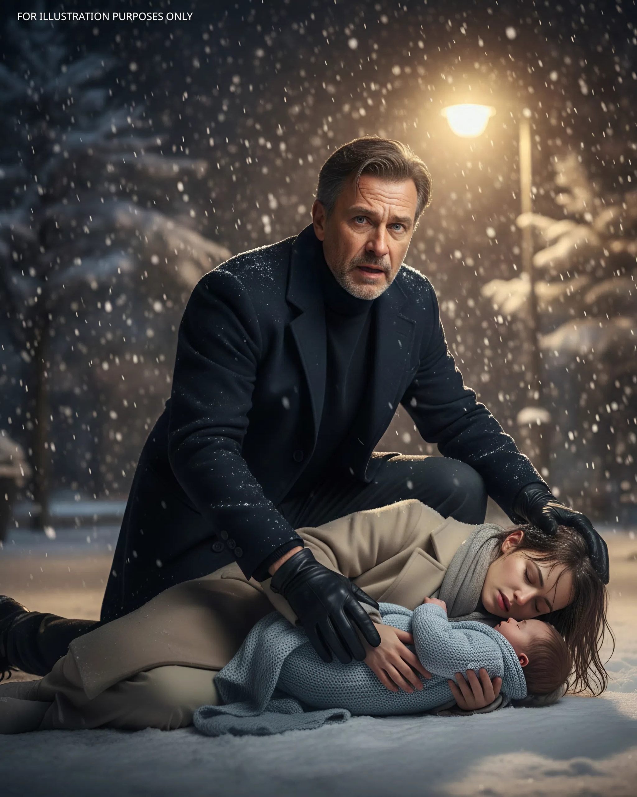 Na okraji zamrzlého rybníka, sotva viditelná pod sněhovou pokrývkou, ležela na zemi skrčená žena. Na zlomek vteřiny si Ethan myslel, že mu hraje mysl. Pak se jeden z malých tvarů v jejích náručích pohnul. Slabý, zlomený výkřik prořízl noc.